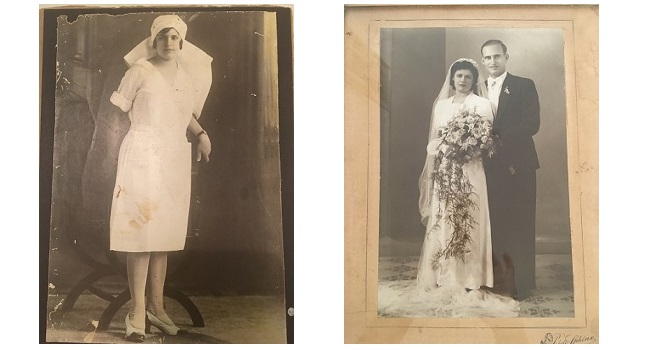 Left: Despina in her nursing outfit, c. 1933. Right: Wedding photo of Despina and her husband Lascaris ( or Vlassis as he was better known as) Kerassitis. Married 22nd September 1940, Egypt.